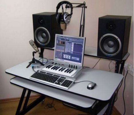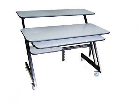 שולחן עבודה אוניברסלי לאולפני הקלטות עם ראק 19" מובנה, מגיע עם גלגלים הניתנים לנעילה.