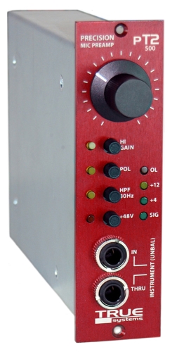 קדם מגבר למיקרופון ולכלי נגינה בעל ערוץ יחיד למארזי סדרת 500 בעל מעגל חדש מ TRUE Systems.