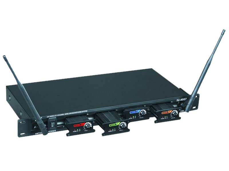 סט של 4 מיקרופונים ידניים בשידור UHF מבית ICM. מארז של 4 מקלטים המתאים לארון ציוד מקצועי ( RACK ) איכותי במיוחד. מערכת מקצועית המאפשרת חיסכון רב במקום והפעלה פשוטה בלי בעיות בתחומי התדרים בין המיקרופונים.