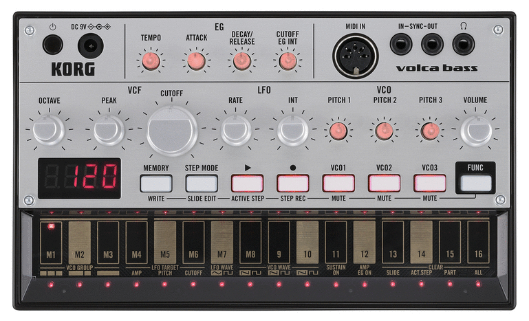 כמו כל סדרת Volca, גם ה-Volca Bass מצויד בסיקוונסר מובנה של 16 צעדים. מערכת זו מאפשרת לתכנת דפוסי באס קצביים, להוסיף תנועה באמצעות Motion Sequence, ולשלב Slide ו-Accent כדי לקבל קווים דינמיים המזכירים את מכונות הבס הקלאסיות של שנות ה-80.