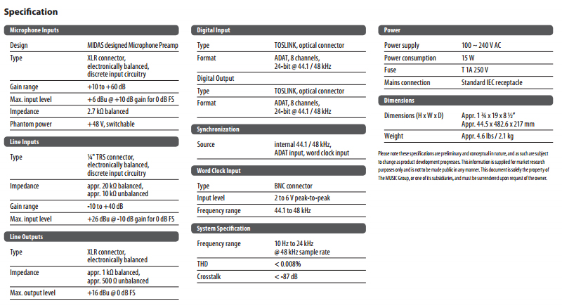 דבר כזה עוד לא ראינו. בהרינגר מוציאה שמיניית קדם-מגברים (PRE-AMP) מתוצרת חברת הבת שלה MIDAS - הכולל ממיר AD-DA ויציאת/כניסת ADAT. בעזרת הADA8200 תוכלו להרחיב את מספר הכניסות שלכם באולפן (במידה ויש לכם כרטיס קול התומך ADAT) עם שמיניית פריאמפים איכותיים במחיר מצחיק.