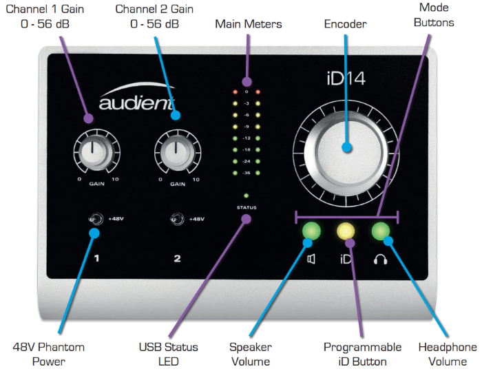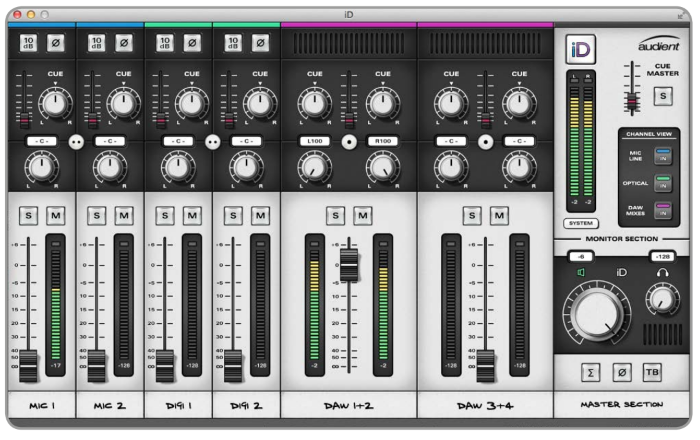 חברת הקונסולות והפרה אמפים הבריטית Audient מטמיעה את הנסיון והטכנולוגיה שבידיה בממשק מקצועי המעוצב עבור מוזיקאים, על מנת לפשט ולייעל את תהליך ההקלטה אך לשמור על איכות לאורך שרשרת הסיגנל. עם זוג פרה אמפים מעולים וכניסת Instrument/ DI, המרה באמצעות ממירים של Burr Brown, בקרת שליטה על מוניטורים ומגבר אוזניות עצמאי וחזק.