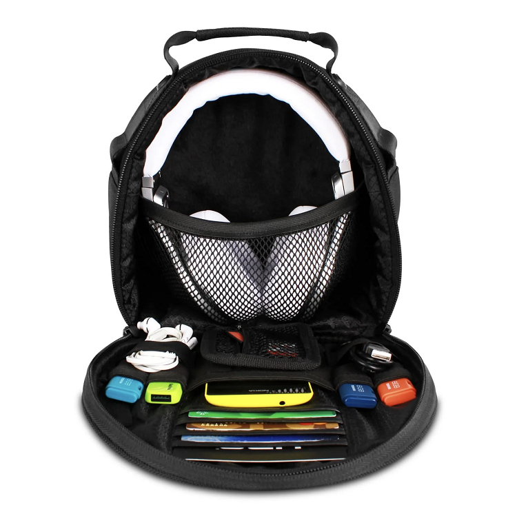 תא מרופד ועמיד במיוחד לאוזניות – התא המרכזי עוצב במיוחד לאחסון בטוח של רוב דגמי האוזניות המקצועיות בשוק (כולל Pioneer, Sennheiser, Audio-Technica, Technics, ועוד).