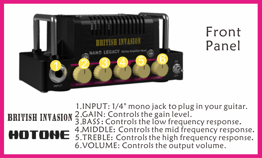 ה British Invasion מעניק את הסאונד של ה AC30 האגדי בווליומים נמוכים, כמו שאר המגברים של ה nano legacy הוא מסוגל לדחוף Gain גבוה ולדחוף את הבוקסה מבלי להזים בווליום. מבוסס מגבר Class A/B איכותי עם יציאת אוזניות הלוכדת את הטון הייחודי גם ללא בוקסה מבלי להפריע לאחרים, כניסת AUX לשילוב של מקור פלייבק ו EQ חם בסטנדרט אמריקאי גבוה. מעולה גם להקלטות בהם הסאונד חשוב יותר מהעוצמה או כאפקט Over-Drive איכותי ברמת בוטיק.