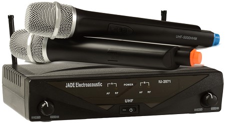 סט מיקרופונים כפול, אלחוטי בשיטת שידור UHF.