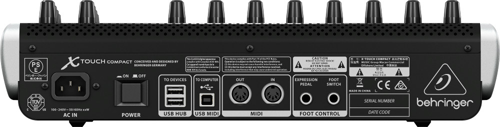 ה X-Touch compact הוא הדור החדש של ה BCF2000 הפופולארי וגרסה יותר "אלקטרונית" ל X-Touch עם יותר נובים ( מקודדים אינסופיים ) המעניקים שליטה על כלים ופלאג-אינים והתמקדות במיקס בצורה יותר "חייה", תוספת ל X-Touch ולמי שצריך בעיקר את הפיידרים הממונעים, כמות מכובדת יותר של נובים, פחות את הג'וג ויותר קלות הפעלה. הפיידרים הממונעים באורך 100 מ"מ רגישים למגע מה שאומר שברגע שנוגעים בפיידר כל הנובים מצד שמאל ממופים לערכים נבחרים בערוץ עם הבונוס החשוב של חוגות התאורה שמראות את הערכים של הערוץ, בלי להקפיץ ערכים ועם תצוגה ויזואלית ברורה על כל מה שקורה. נוב מעל כל פיידר מעניק שליטה מגוונת על צידוד, שליחות, eq וכו' בלחיצת כפתור אחת. השליטה מדויקת במיוחד ברזולוציה גבוהה לכל תוכנה עם מיפויים מובנים ( סטייל HUI )