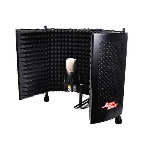 ה Apextone S 105 הוא מסך אקוסטי גדול אך מתקפל המקטין משמעותית את כמות ההדהוד החוזר בהקלטה בחדר. המסך משפר את המובנות והדיוק בשימוש בקונדנסרים הניחנים ברגישות גבוהה להחזרים מהקירות, להקלטה אינטימית "ויבשה" יותר.