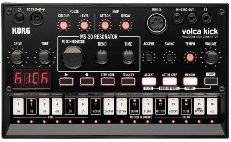 ה Volca Kick הוא לא רק מכנות Kick הוא מסוגל גם לנגן טונאליות של בס כמו ב Trap/Grime בעזרת 16 כפתורי המגע. חשוב לזכור שבזכות השליטה על הטון הנרחבת ניתן ליצור גם תפקידי Low tom/high tom וסאונד אפקטס.