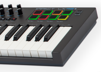 61 קלידים רגישים למגע חצי שקולים, בגודל מלא בסטייל "פסנתר", סגורים להגנה מפני אבק ולכלוך ומחמיאים לעיצוב של ה Impact LX+. הם מעניקים 4 עקומות נגינה לבחירת הדינמיקה לטעם ולאופי הנגינה של המשתמש. אם אין צורך ברגישות למגע, ניתן לבחור בין שלושה דרגות של עוצמות קבועות.