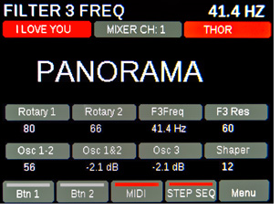 מסך TFT גדול וצבעוני (3.5 אינץ') נותן את כל האינפורמציה שצריך ברזולוציה מדהימה. אתם יודעים בדיוק על מה כל פיידר שולט, על מה כל נוב שולט ובאיזה מצב (מספר) הוא נמצא דרך מסך אחד, שמות כלי התופים או הקליפים הנשלטים על ידי הפדים מופיעים בתוך 12 קוביות לנוחות חסרת תקדים ביצירה. הערוץ הנשלט על ידי הפיידר הממונע מופיע תמיד בחלקו העליון של המסך. הפנורמה לוקחת את כל העבודה הקשה מהשימוש בשלטים ומעניקה הפעלה שקופה ופשוטה שגורמת למקלדות אחרות להרגיש מסובכות בצורה יתרה.