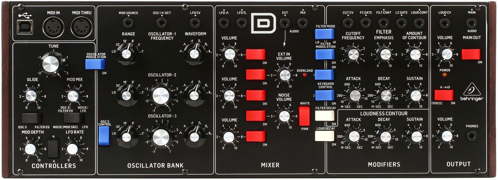 Behringer Model D הוא סינתיסייזר אנלוגי מונופוני שמבוסס על אחד הכלים האגדיים ביותר בהיסטוריה – ה-Minimoog Model D. מדובר בשחזור מדויק של הצליל הקלאסי והחם שהפך לסמל של דור שלם במוזיקה האלקטרונית, הרוק והפופ.