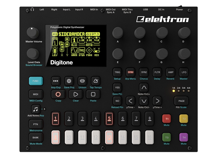 Elektron Digitone הוא סינתיסייזר FM דיגיטלי פורץ דרך, אשר לקח את סינתזת ה־FM המורכבת והפך אותה לנגישה, אינטואיטיבית ויצירתית במיוחד. הוא מציע שמונה קולות פוליפוניה, ארבעה ערוצי סינתזה ועוד ארבעה ערוצי MIDI, מה שהופך אותו לכלי מרכזי בהפקות אלקטרוניות ובסט־אפים של הופעות חיות.