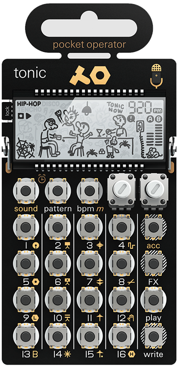 Teenage Engineering PO-32 Tonic הוא דגם מיוחד ופורץ דרך בסדרת Pocket Operator, שפותח בשיתוף פעולה עם Sonic Charge ומבוסס על מנוע הסינתזה של תוכנת Microtonic. מדובר במכונת תופים קומפקטית, חזקה וגמישה, שמאפשרת למפיקים ליצור מקצבים מורכבים בכל מקום.