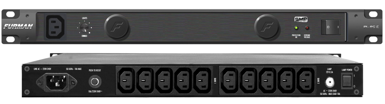 ה Furman PL-8C E בעל הספק של עד 10 אמפר, תאורת אבחון להגנות ותאורת LED נשלפת.