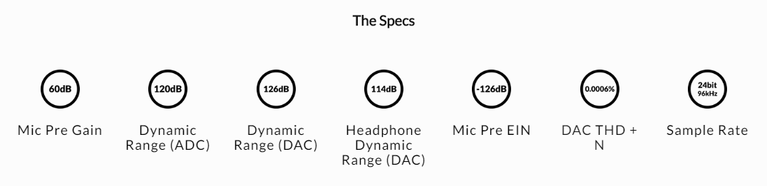| THD+N @ -1dBFS (1kHz): | <0.0008% (-103dB) |