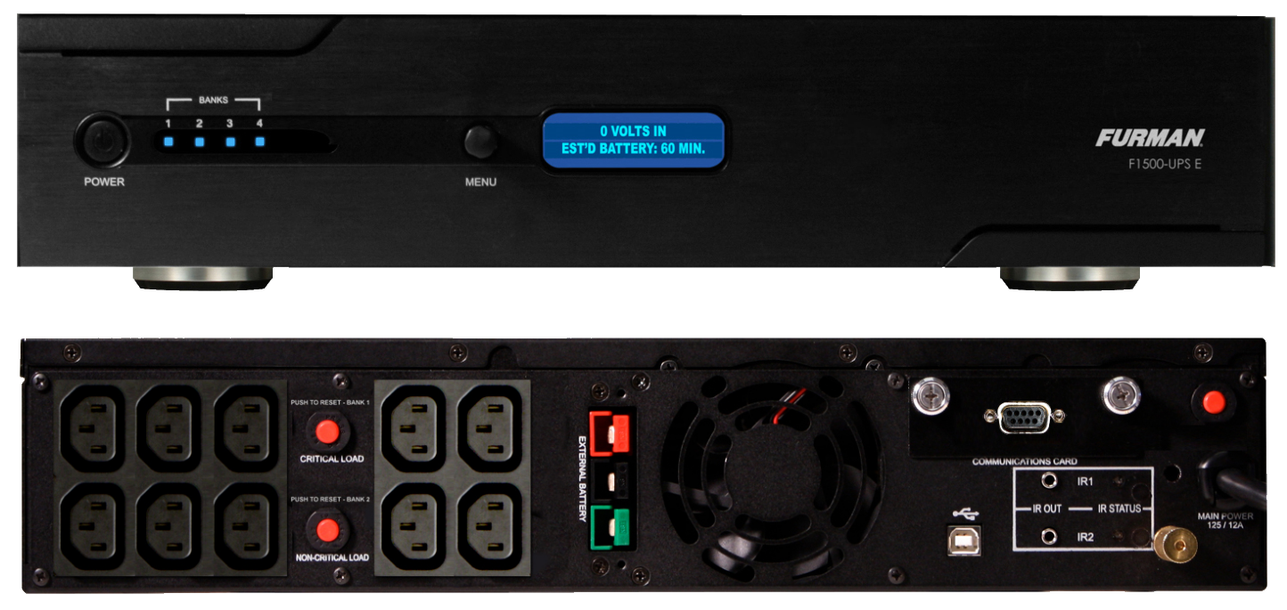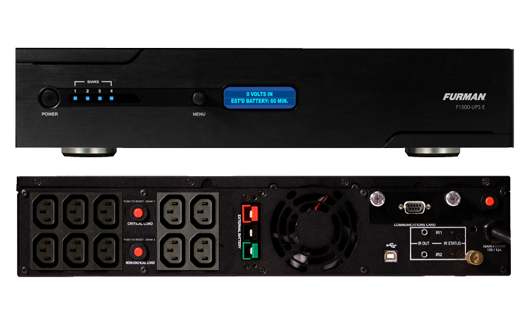 Furman F1500-UPS E מערכת אל פסק (UPS) ליישומים קריטים תוצרת פורמן True Sine Wave Output עם שליטה מרחוק אופציונאלית ב BlueBOLT (שליטת רשת מבוססת IP) תואמת ארון זיווד 19”