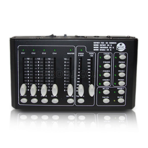 מערכת פיקוד DMX עם 4 ערוצים לשליטה על תאורה - מותאם לאולמות ובארים ומעדונים קטנים.