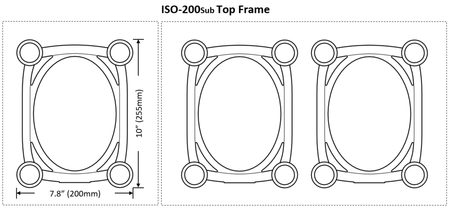 הISO-200Sub מגיע בגודל 200X255 מ"מ בעובי x 3.5 אינץ '(90 מ"מ) ונינתן להעמיד עליו סאב וופר במשקל של עד 60 קילוגרם.