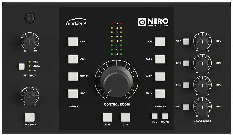 NEROכולל מערך מקיף של כניסות ויציאות מה שהופך אותו למרכז האולפן, העיצוב השולחני הנוח יחד עם מגוון האפשרויות נותן את הפיתרון האולטימטיבי לאולפנים גדולים וקטנים כאחד. הNEROמאפשר חיבור ל 3 זוגות מוניטורים שונים עם כפתורי החלפה בין המוניטורים בחזית המכשיר לגישה נוחה ויציאה נפרדת לרמקולSUB WOFFERאותו ניתן להצמיד לכל אחד מיציאות המוניטורים. ו 4 כניסות סטריאו לחיבור מקורות שונים לשלט. כפתורים יעודיים לDIM(הנחתה ריגעית של הווליום) וMONOלשמיעת המיקס במונו ומערכתTALKBACKעם מיקרופון בנוי בתוך השלט לתקשורת נוחה עם הנגנים בסטודיו מבלי לחבר מיקרופונים חיצוניים.