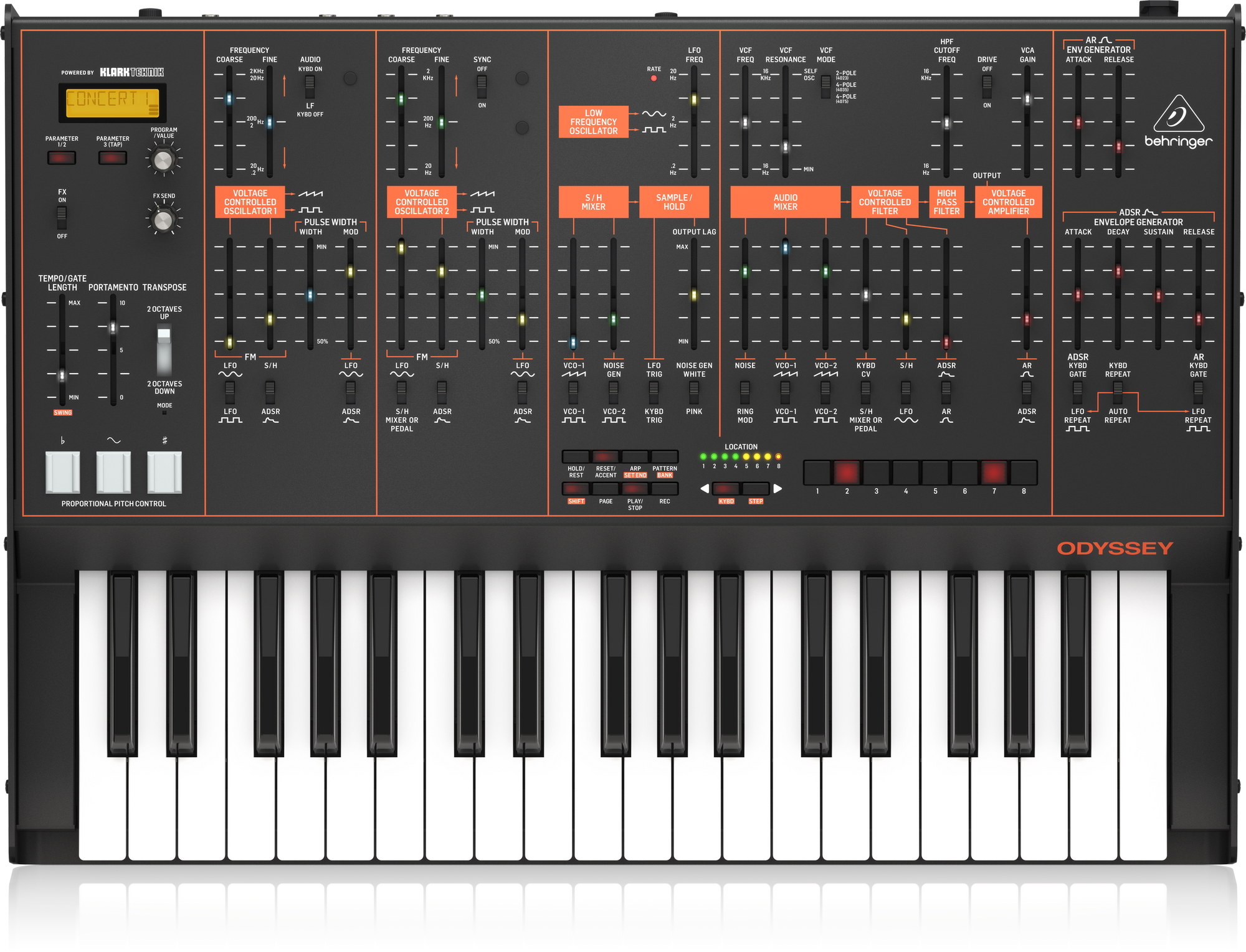 ה Odyssey של Behringer הוא מחווה מיוחדת לסינתיסייזר ARP האגדי של שנות ה -70 , עם כל התכונות של המקור ועוד כמה כולל: VCOs כפולים, סיקוונסר עם 32 צעדים ו- Klark Teknik FX שמוסיפים אפקטים ברמה עולמית כמו reverb ו flanger.