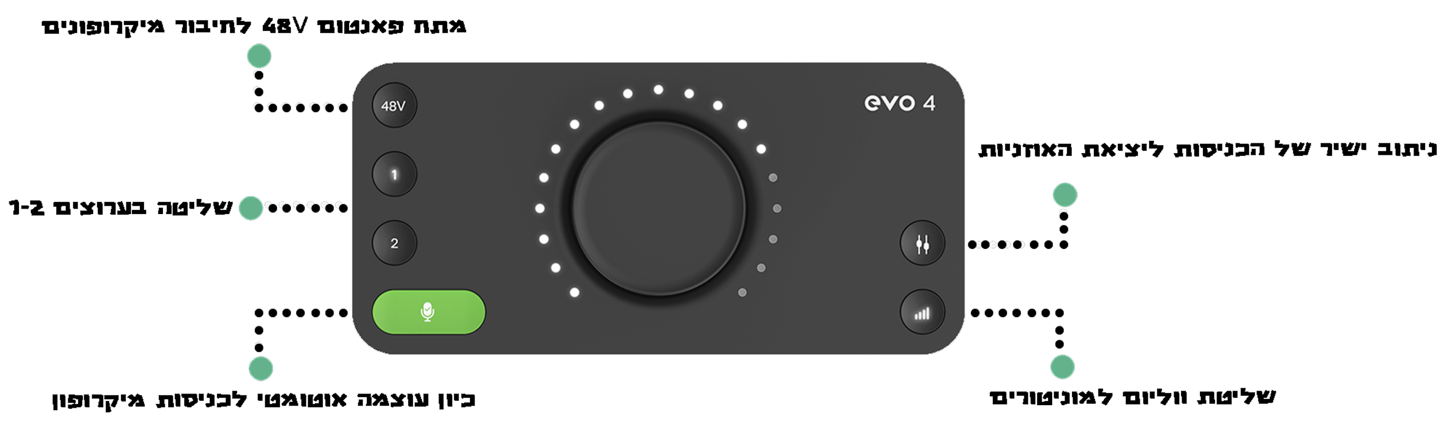 ה- EVO 4 של Audient ארוז ברכיבים ופונקציות ברמה המקצועית והגבוה ביותר עם ביצועים ואיכות ושמע שתשאיר אתכם המומים.