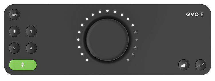 2 כניסות המיקרופון של ה- EVO8 הם בעלי אופי שקוף וכניסת ה JFET למכשירים בעוצמת ליין מוסיפה צבע עשיר ומספק לכניסה.
