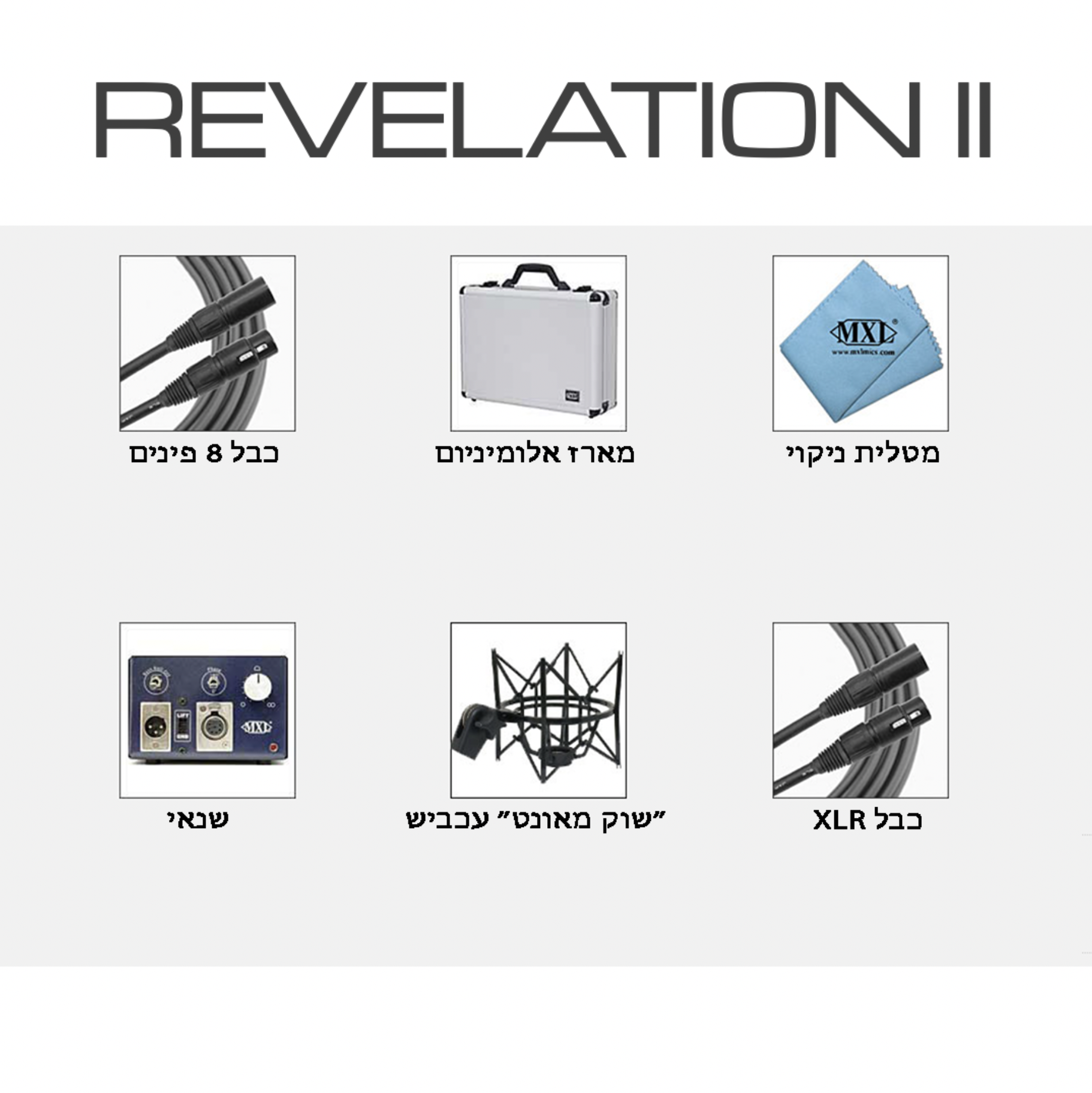 Revelation II הוא המיקרופון המפואר ביותר של חברת MXL. כל אולפן מקצועי רציני דואג שיהיה לו לפחות מיקרופון אחד המסוגל לביצועי-על, מיקרופון שיכבד את תפקידי הסולנים ויבליט אותם מעל המיקס הרבה לפני שלב המיקס.