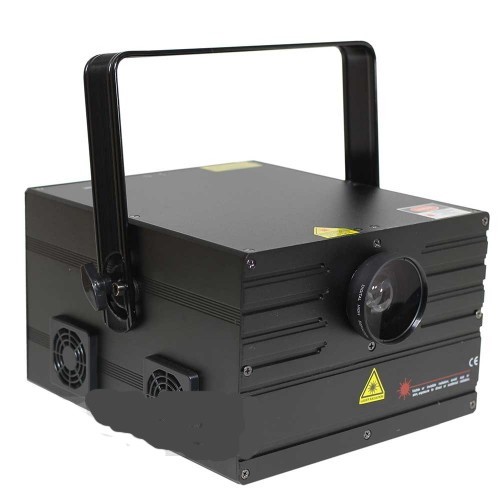 מכונת לייזר חזקה במיוחד לאירועי חוץ, עוצמת קרן של 2000mW, בעלת אפקט לייזר RGB (אדום, כחול וירוק) יכולת לכתוב טקסט האנגלית, מעולה כאפקט תאורה צבעוני לרחבת ריקודים, אפקט קרני לייזר חד עוצמתי ומדויק.