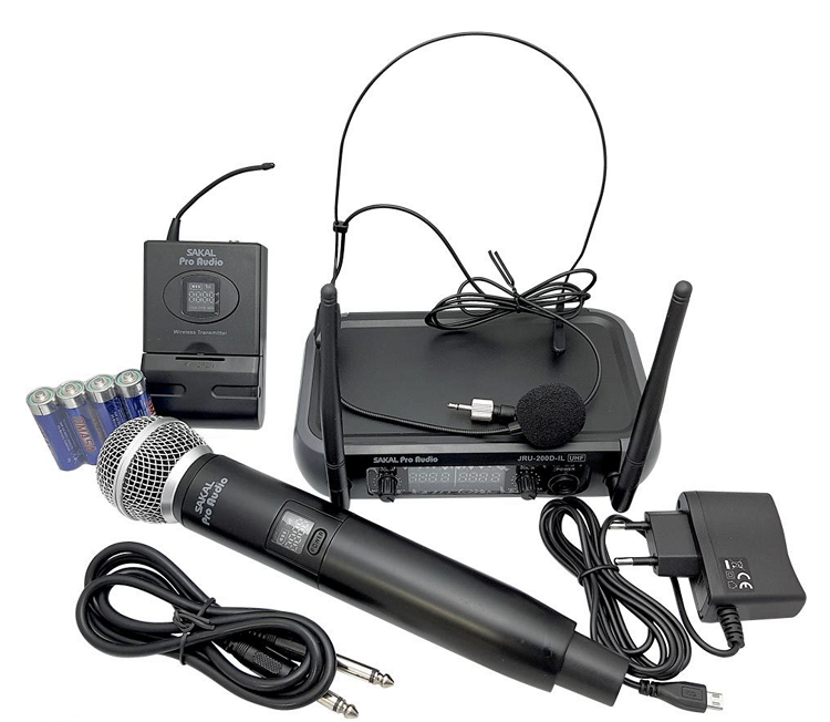 ערכת קומבו משדר מיקרופון במה ואוזניה Sakal JRU-200D-IL
