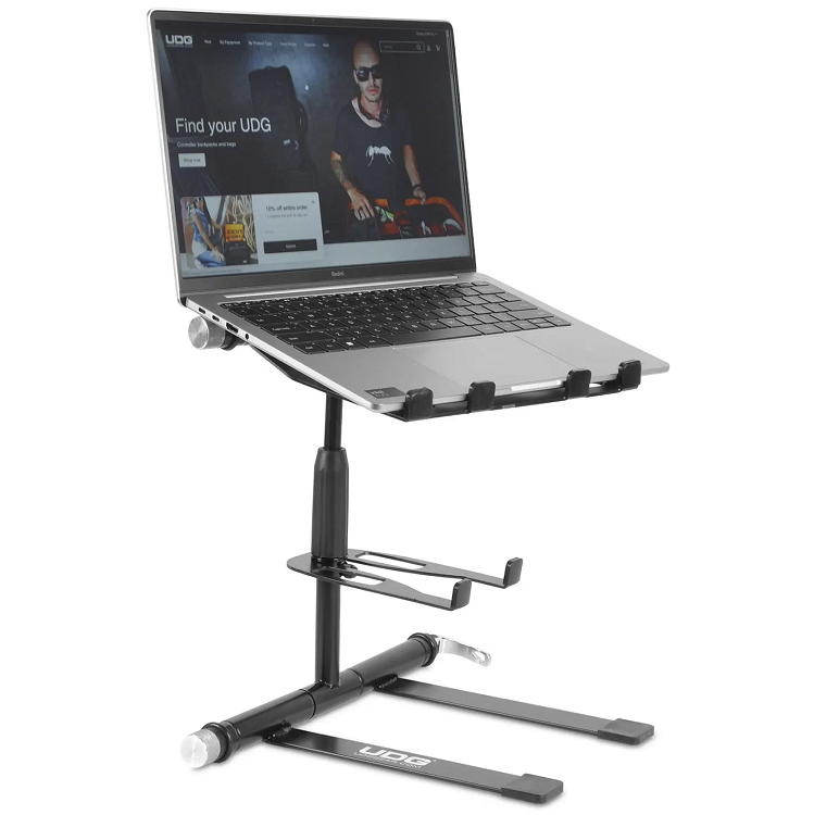 הסטנד UDG Ultimate DIGI Laptop Stand מעניק פתרון אידיאלי לתמיכה בלפטופ, קונטרולר קומפקטי, טאבלט או אביזרי DJ נוספים – בגובה ובזווית שמותאמים אישית למשתמש.