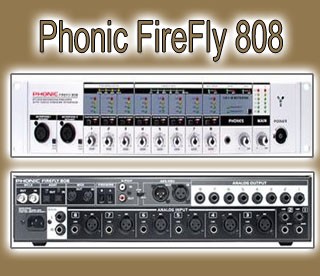 ממשק האודיו/מידי המפתיע שלPhonic - במחיר סביר ושלל תכונות חשובות לאולפן המודרני, שפע כניסות ויציאות, ממשק דיגיטלי וקדם-מגברי מיקרופון. ה-Firefly 808פועל בממשקFireWireובגודל זיווד סטנדרטי 2U,ומציע 8 כניסות אנלוגיות ו-8 יציאות אנלוגיות (XLRו-1/4"), ו-16 כניסות דיגיטליות. כמו כן ניתן לשרשר אותו באמצעות לעוד יחידות וזאת כדי להגיע לכדי 24 כניסות אנלוגיות. החומרה תומכת בתדר דגימה שבין 44.1 ל-192 קה"ץ, כאשר הממשק הדיגיטלי כולל כ/י בפורמטADAT, AES/EBU, S/PDIF,ו-SMUX,ומוצע ממשק נוסף עבורMIDI. קל לתפעול ומשמש כיחידת הקלטה איכותית ביותר להקלטת כלי נגינה ושירה ישירות למחשב, כאשר כל המקורות זורמים אל ומאת המחשב בזמן אמת דרך חיבוריותFireWire,וזו מאפשרת 3 אופני פעולה שונים. ה-Firefly 808מאפשר בקרה ישירה באפס עכבת (latency) ומצורף דרייברASIO להקלטות רב-ערוציות חלקות, שני מבואותFireWire,סנכרוןWORD,ושעוני חיווי מדויקים.