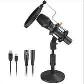 מיקרופון דינמי ידני עם חיבור USB/XLR (דו-מצבי.) יציאת ה USB הדיגיטלית מתחברת למחשבי PC, Mac ויציאה אנלוגית בXLR מתחברת למיקסרים, ממשק שמע או מערכת PA ניידת. אידיאלי עבור: פודקאסטים, הקלטה, סטרימינג בשידור חי, ווקאלי, קריינות, שירה, אולפן ביתי, יצירת תוכן. ניטור ללא Latency וכפתור לשינוי עוצמת הקול: יציאת אוזניות מובנת בגודל 1/8 אינץ' (3. 5 מ"מ) מאפשרת לעקוב אחר הסאונד תוך כדי הקלטה ללא כל עיכוב או הד. למיקרופון HD300T יש גם כפתור בקרה שיכול להתאים את עוצמת הקול של יציאת האוזניות בצורה נוחה. (ניטור ובקרת עוצמת הקול פועלים רק במצב USB) מיקרופון קרדיואידי דינמי: קפסולת קרדיואידית מובנית יכולה ללכוד צליל ישירות מול המיקרופון ומפחיתה רעשי רקע לא רצויים ממקורות אחרים. תגובת תדרים חלקה ומורחבת לשחזור ווקאלי עשיר וטבעי. קונסטרוקציית מתכת עמידה ועמוסה באביזרים: קונסטרוקציית מתכת קשיחה מספקת עמידות יוצאת דופן. בסיס מעמד מתכת כבד מציע יציבות והוא מתכוונן לגובה. משכך רעידות ומסנן פופ כלולים כדי להפחית רעם ו-p-pops בתדרים נמוכים.