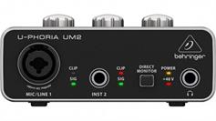 כרטיס קול קומפקטי מבית בהרינגר בחיבור USB. הUM2 מספק זוג יציאות אודיו מהמחשב בפורמט RCA, כניסת קומבו המאפשרת חיבור מיקרופון (XLR) גם מסוג קונדנסור או חיבור LINE (PL). בנוסף, ניתן לחבר גיטרה ישירות לחיבור ה INST הממוקם בקדמת הכרטיס ללא צורך בקופסאת DI. ניתן להתחבר עם אוזניות במקביל לחיבור הRCA ומתג ה DIRECT MONITOR מחווט בין כניסות הכרטיס ליציאות ועוקף את המחשב ותוכנת ההקלטה ובכך ניתן להקליט ביצוע ללא בעיות עיכוב (לייטנסי).