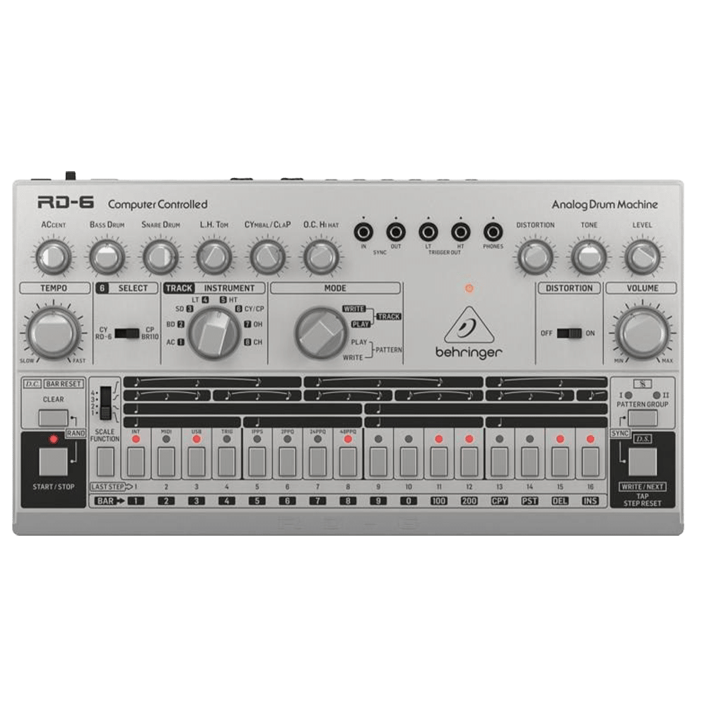 Behringer RD-6 מבוססת על מעגלים אנלוגיים שמפיקים שישה צלילי תופים קלאסיים. כל צליל מגיע עם אופי ברור וחותך, שמתאים למיקס אלקטרוני מודרני. הקיק עמוק, הסנר חד, וההיי-האט יושב בדיוק במקום.