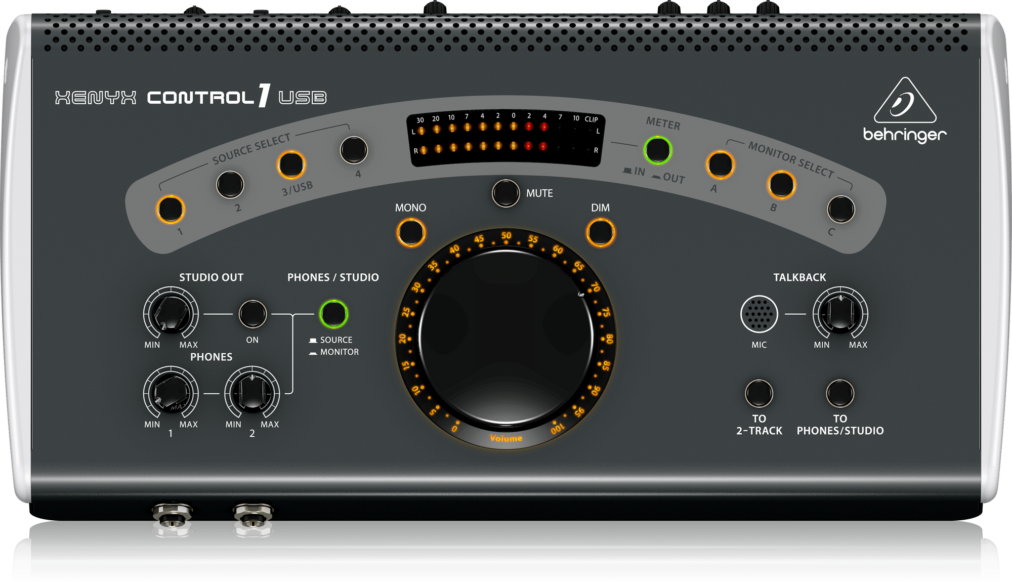 היחידה משלבת בקרת עוצמה מרכזית, בחירת מקורות שמע, מתגי Mono / Mute / Dim ומיקרופון Talkback לתקשורת ישירה בזמן הקלטות.